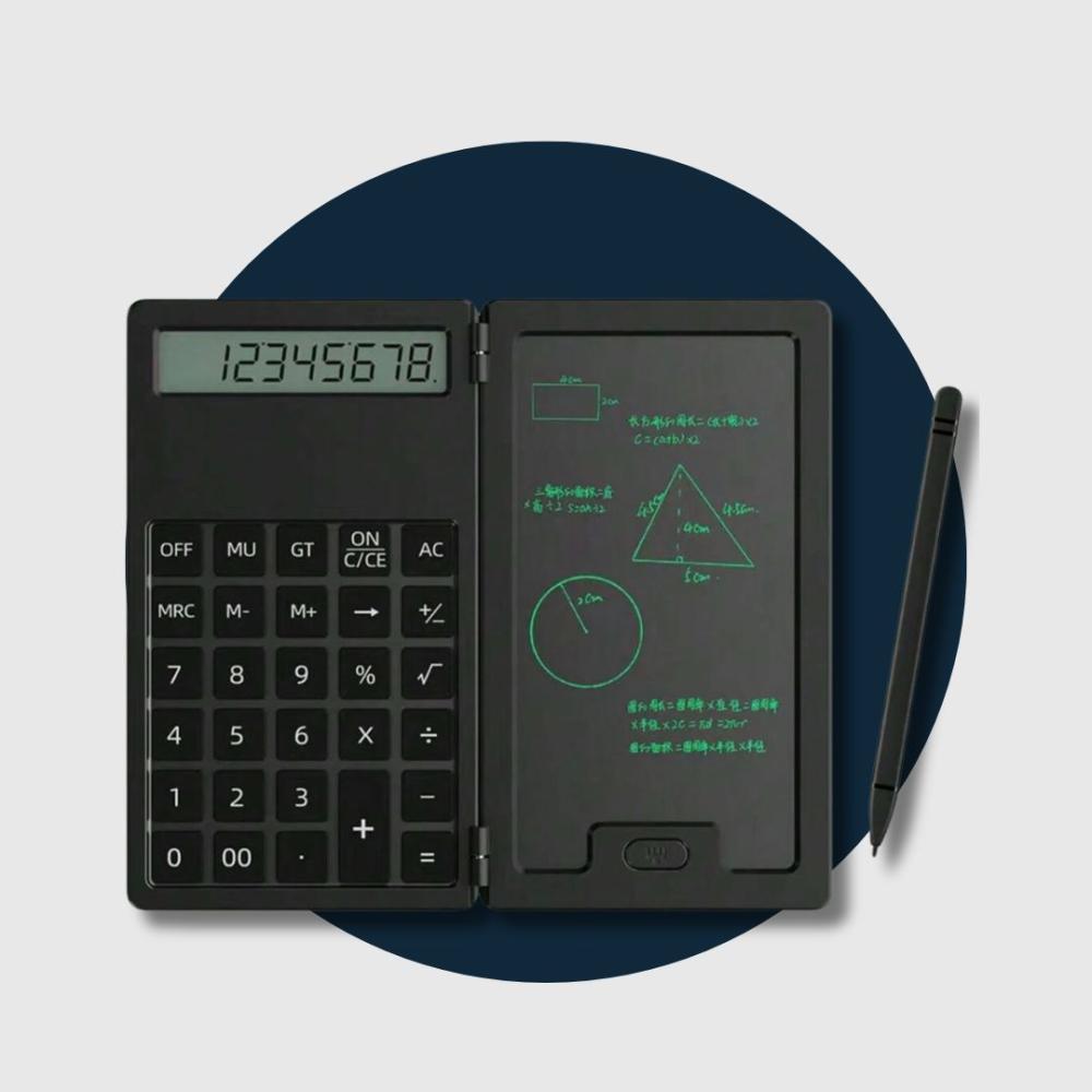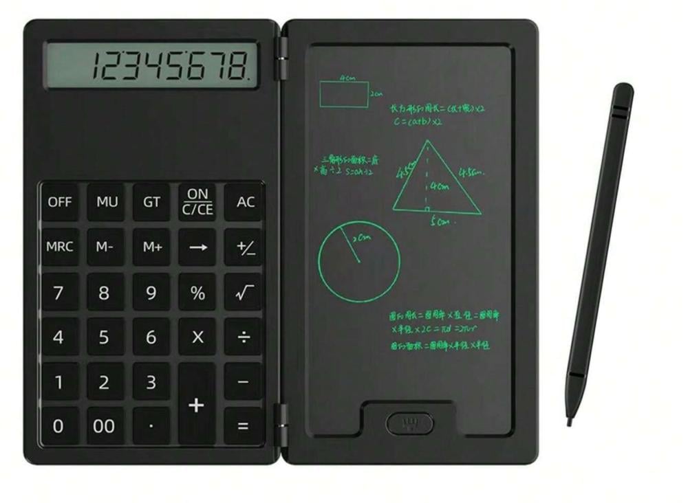 آلة حاسبة محمولة مع شاشة وقلم للكتابة