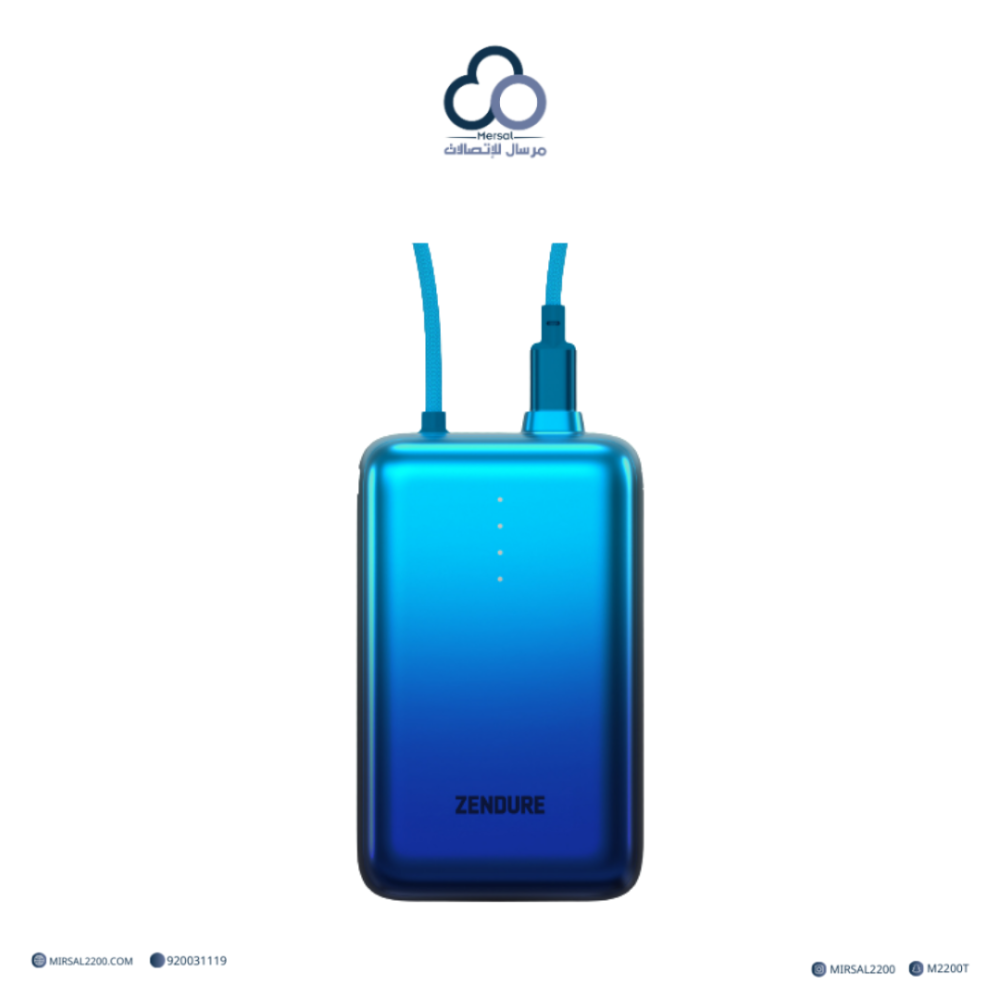 بطارية زندور الخارجية بسعة 20000 مللي أمبير، مزودة بكابل Type-C مدمج وتقنية PD 30W لشحن الأجهزة بسرعة فائقة وأمان عالي. تصميم أنيق وسهل الحمل.