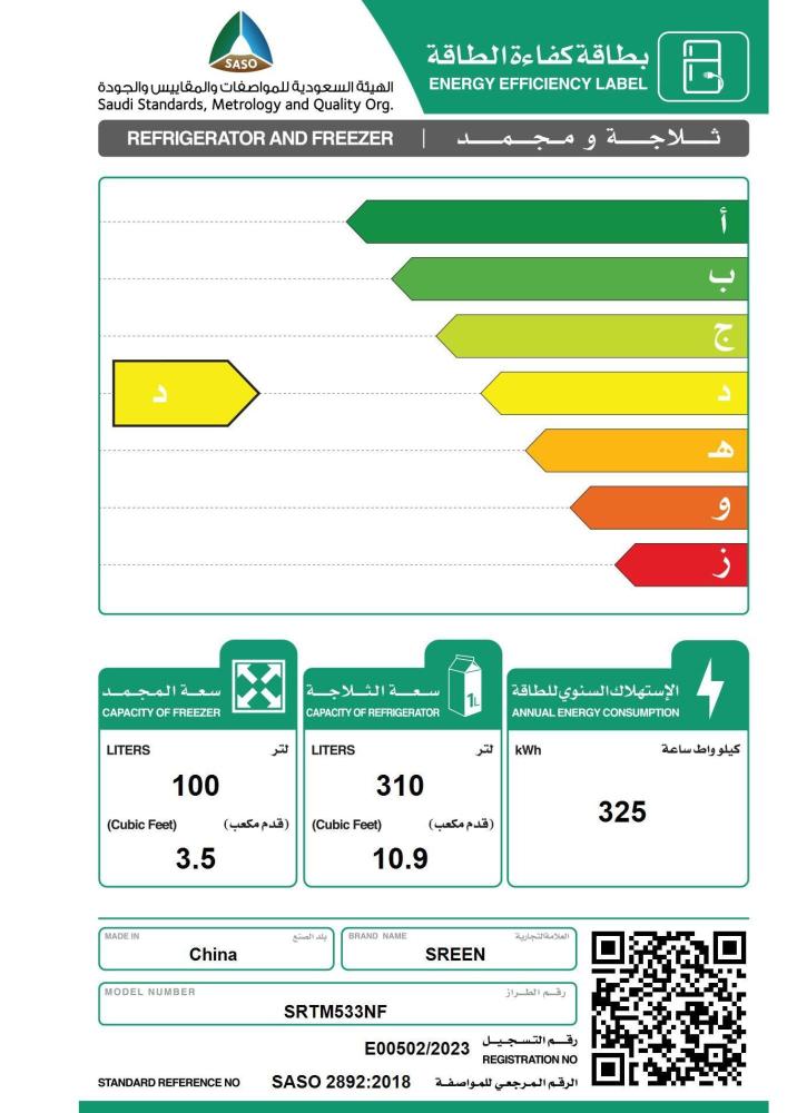 • الاستهلاك السنوي للطاقة: 325 كيلو واط ساعة