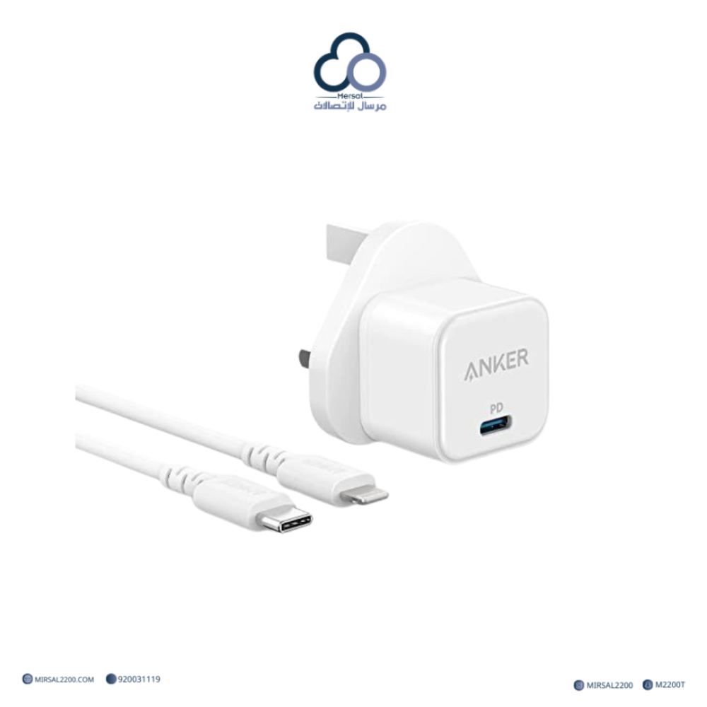 شاحن أنكر PowerPort III — 20W USB-C مع كابل C-to-Lightning (3 أقدام) — أبيض
