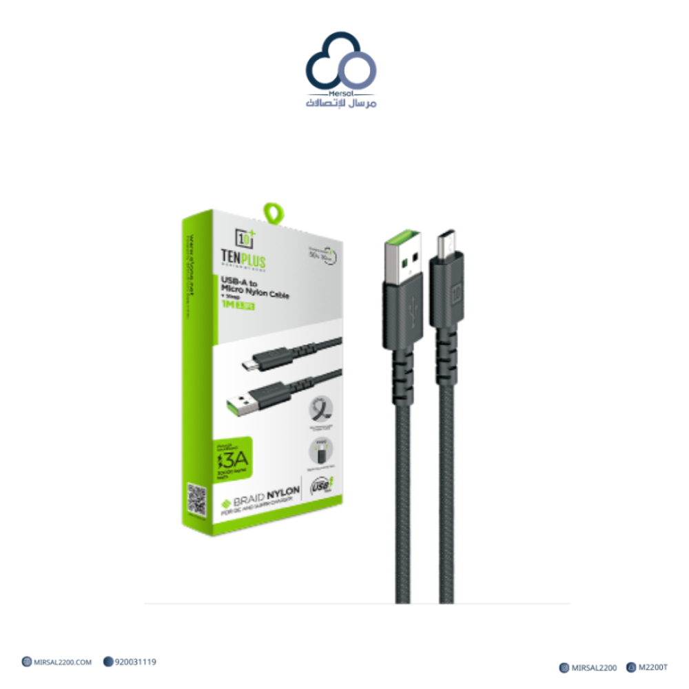 كيبل شحن USB-C إلى USB-C ماركة تن بلس TENPLUS قوة شحن عالية تصل إلى 60 واط. يوفر سرعة شحن عالية لأجهزتك بكل أمان. يدعم نقل ومزامنة البيانات. ذو تصميم معزز بأطراف مدعمة وبتأثير الإنحناء. اجتاز اختبار أكثر من 30000 محاولة ثني