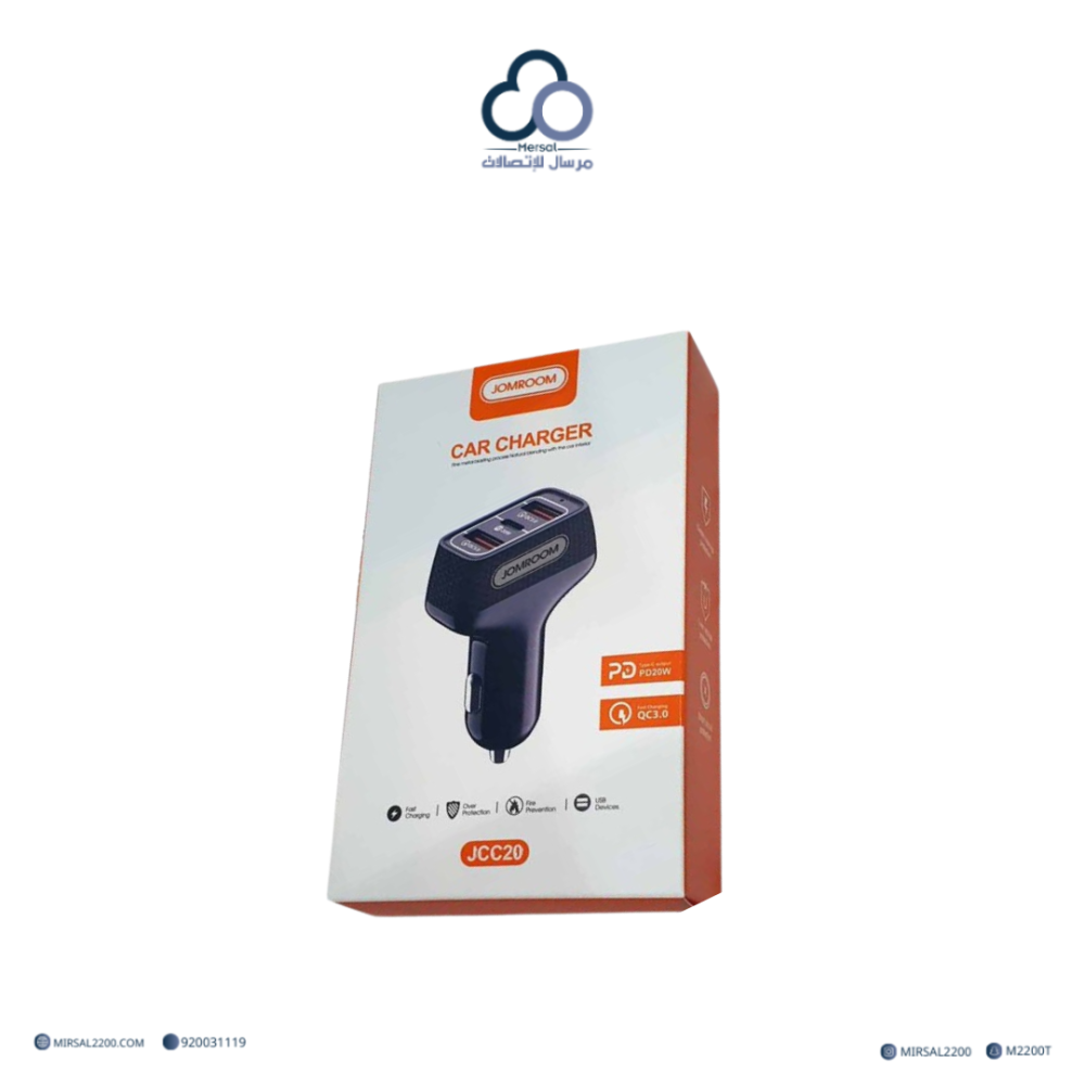 ابقَ متصلاً في كل رحلاتك مع شاحن السيارة الذكي من Jomroom. تصميم عصري بلمسة معدنية، يجمع بين القوة والكفاءة لشحن أجهزتك في وقت قياسي.
