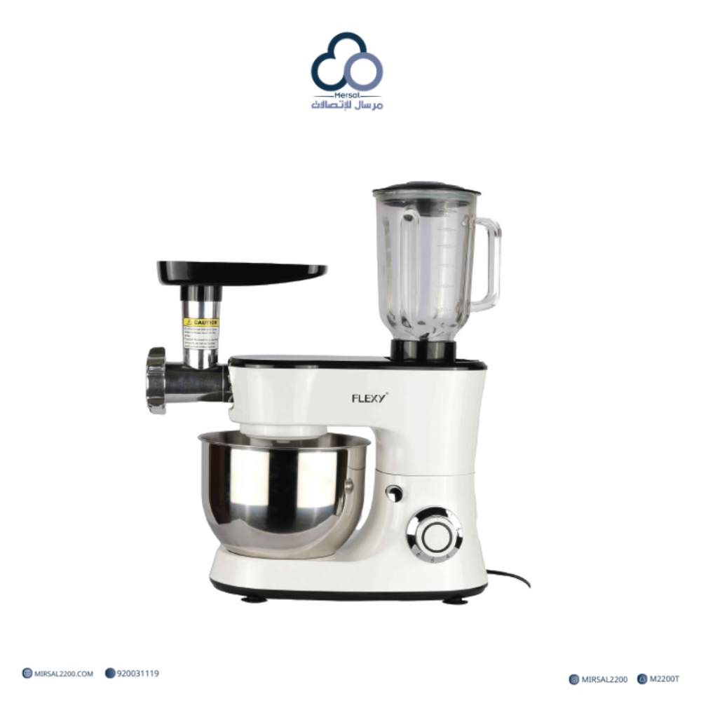 عجانة متعددة الوظائف فليكسي – موديل FMG504عجانة متكاملة من فليكسي بسعة 4.8 لتر، مزودة بخلاط زجاجي 1.5 لتر وملحقات متعددة تشمل خفاقة، مضرب للعجن ومطحنة لحم، لتمنحك أداءً احترافيًا لتحضير مختلف الوصفات.