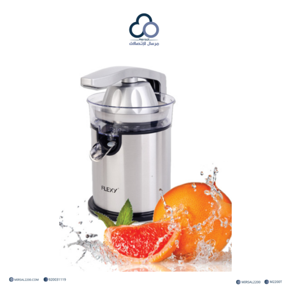عصارة حمضيات فليكسي – موديل FCJ6021Cعصارة حمضيات من فليكسي بتصميم عملي من الستانلس ستيل، مثالية لتحضير عصائر البرتقال والليمون بسرعة وسهولة بفضل المحرك القوي والملحقات المتعددة.