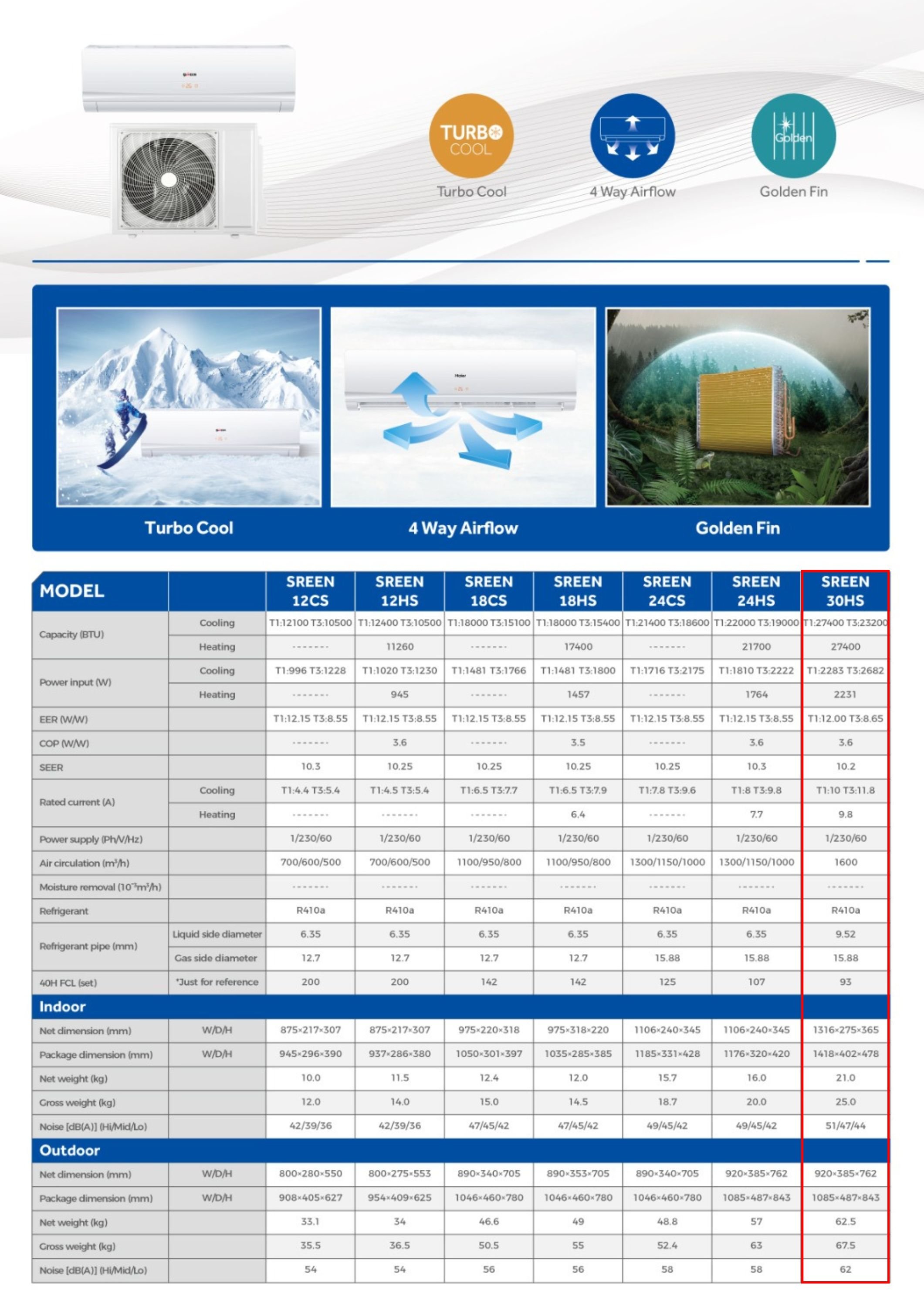 مكيف سبليت سيري بارد و حار – 27400 وحدة (SREEN30HS)